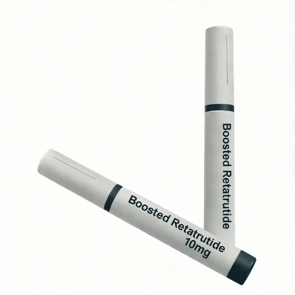 Boosted SS31 is a precision-formulated peptide product presented in a sleek, easy-to-handle pen design for consistent and convenient application. With a clean, modern appearance and clear labeling, it is designed to reflect both functionality and professionalism.